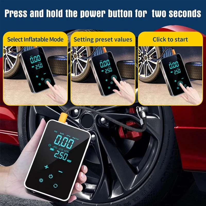 More than a tire Pump: In addition to inflating tires, this 3-in-1 tire inflator also features a 3-mode LED light for emergencies, a Type-C charging port, and a 5V/2A USB output port for charging electronic devices. The Portable Air Compressor is your all-in-one solution for tire inflation and emergency situations. Get yours today and experience the power and convenience of this amazing device!