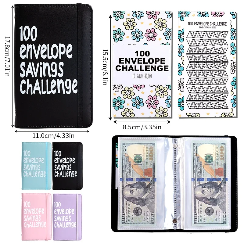 Fun & rich: A 100 envelopes money saving challenge that makes building wealth enjoyable, helping you complete fun savings goals to reach either 5050 or 10000 with a double-sided binder containing 100 envelopes.