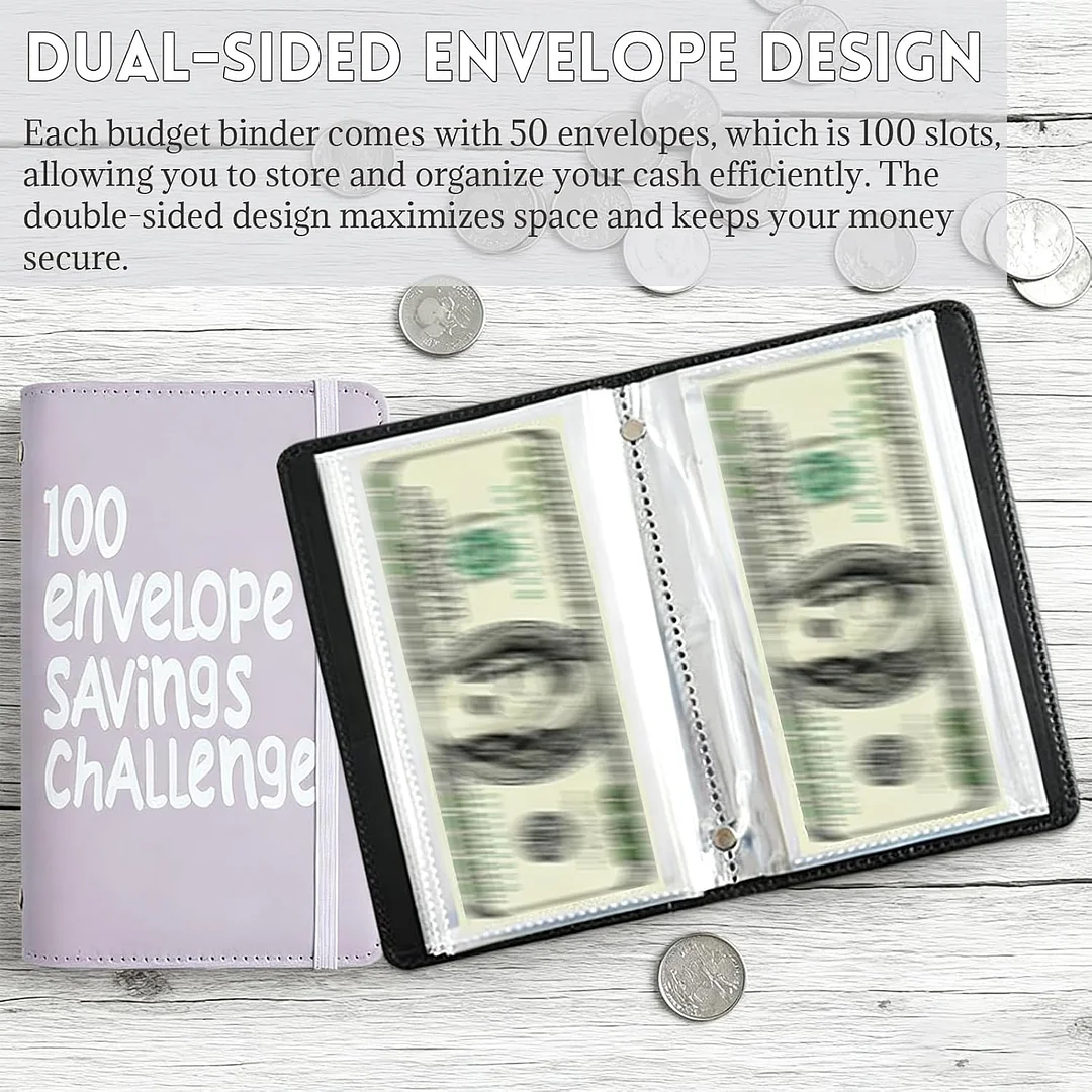 Money savings binder kit: Includes one PU leather binder, one tracker, and 100 wide opening envelopes that allow money to be stored flat without folding, keeping everything neat and organized.
