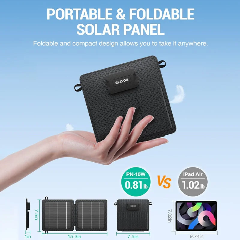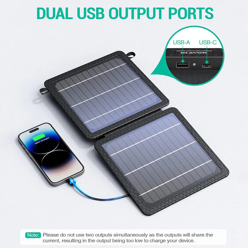 Dual outputs & high compatibility: Foldable solar charger 10W with USB outputs (5V, 2A max), equipped with 2 USB output ports, provides safe and quick charging for your devices, compatible with smartphones, tablets, speakers, etc., ideally meets your almost outdoor charging needs.