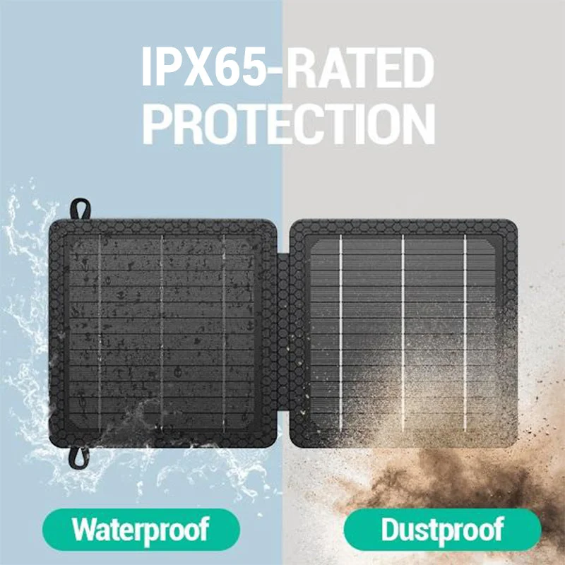 IPX4 Waterproof for Outdoor Reliability: This portable solar charger features an IPX4 waterproof rating, making it resistant to water splashes from all directions. Whether you're hiking, camping, or engaging in other outdoor activities, you can rely on this charger to keep your devices powered, no matter the weather.