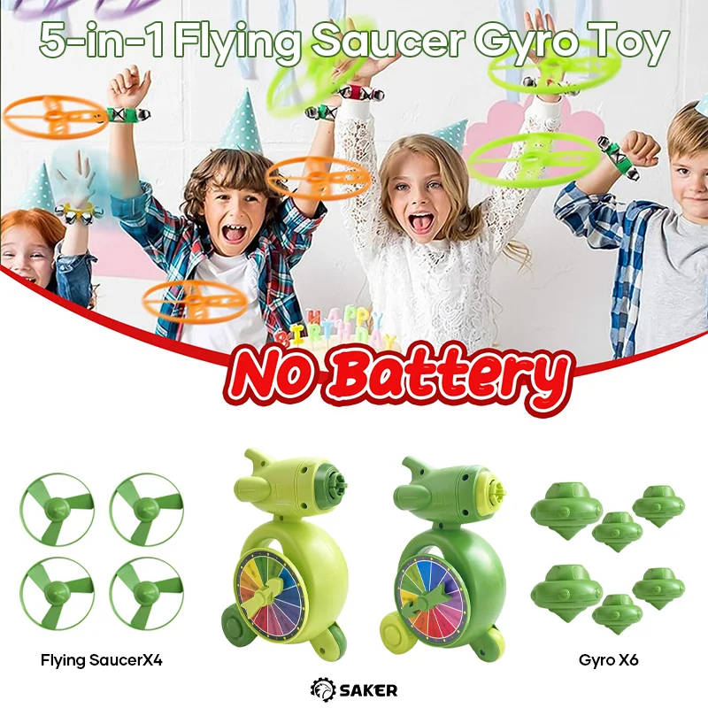 Easy Activation and Launch: With just one click, the SAKER® 5-in-1 Flying Saucer Gyro Toy initiates its spinning flight launch. Simply install the flying saucer, rotate it 3-4 times, and watch it soar into the sky with thrilling speed and precision.
