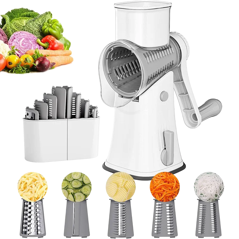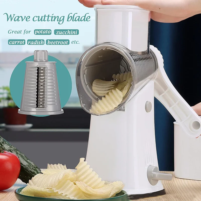 Versatile Grater and Shredder: This shredder includes five blades: thin slicing, grinding, two shredding, and wave cutting. Perfect for cheese, vegetables, cookies, potatoes, nuts, and more. Easily make coleslaw, hash browns, salads, pizza toppings, and fried wave potatoes.