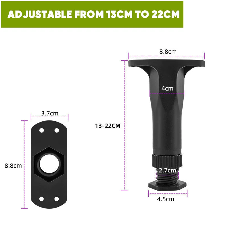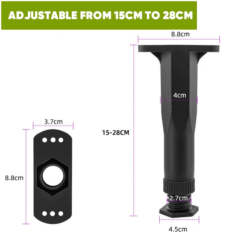 Adjustable height: The height of these bed support legs can be adjusted with the swivel base to select the right height for uneven floors. The shortest bed frame support leg is 8.3 inches, and the longest is 14.5 inches. Please check the required length before purchasing to ensure the size is exactly what you need. Warm Prompt: For structural stability, we do not recommend adjusting the bed frame legs to the maximum height for use.
