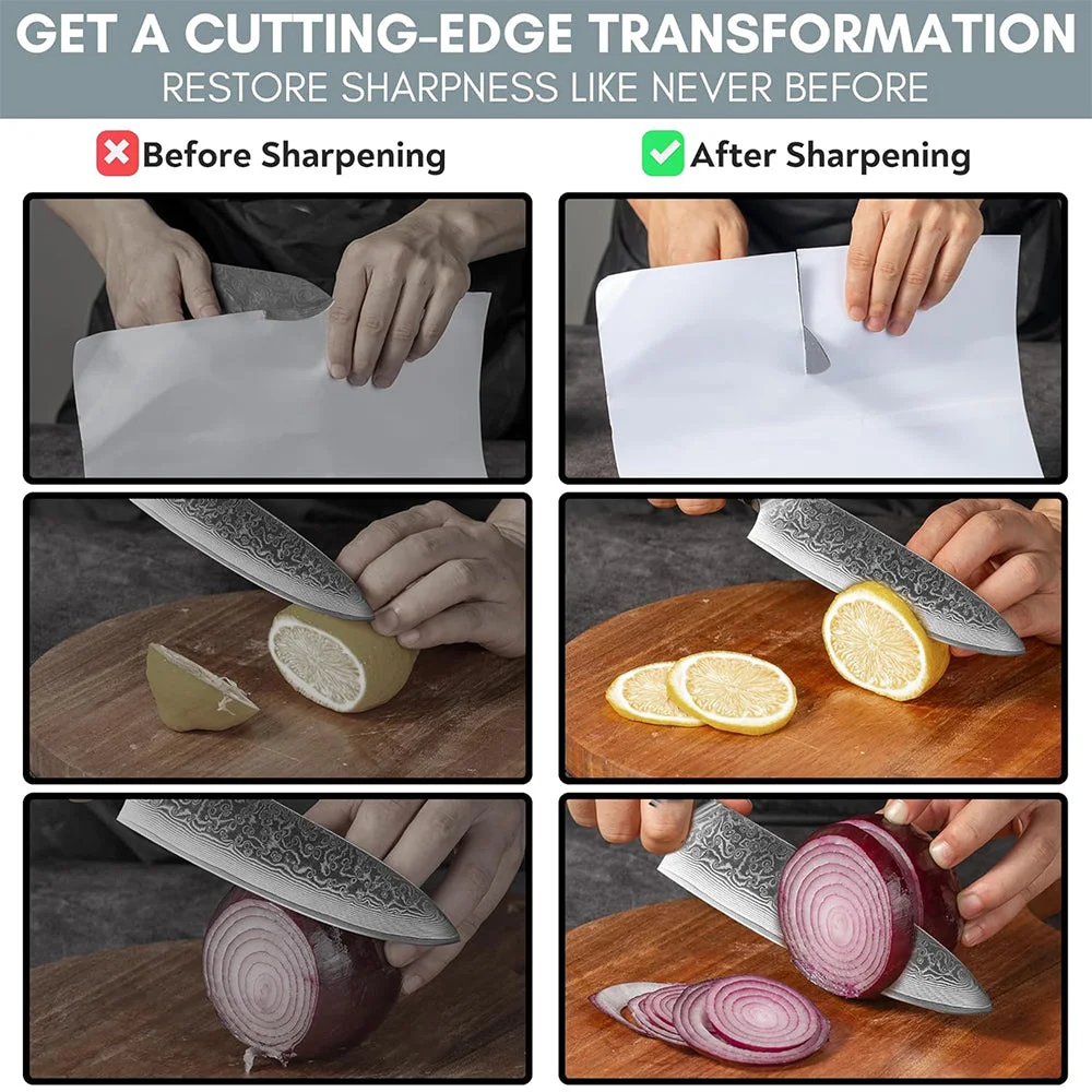 Height adjustability: Effortlessly customize sharpener height for narrow to large blades without needing extra cutting boards.
