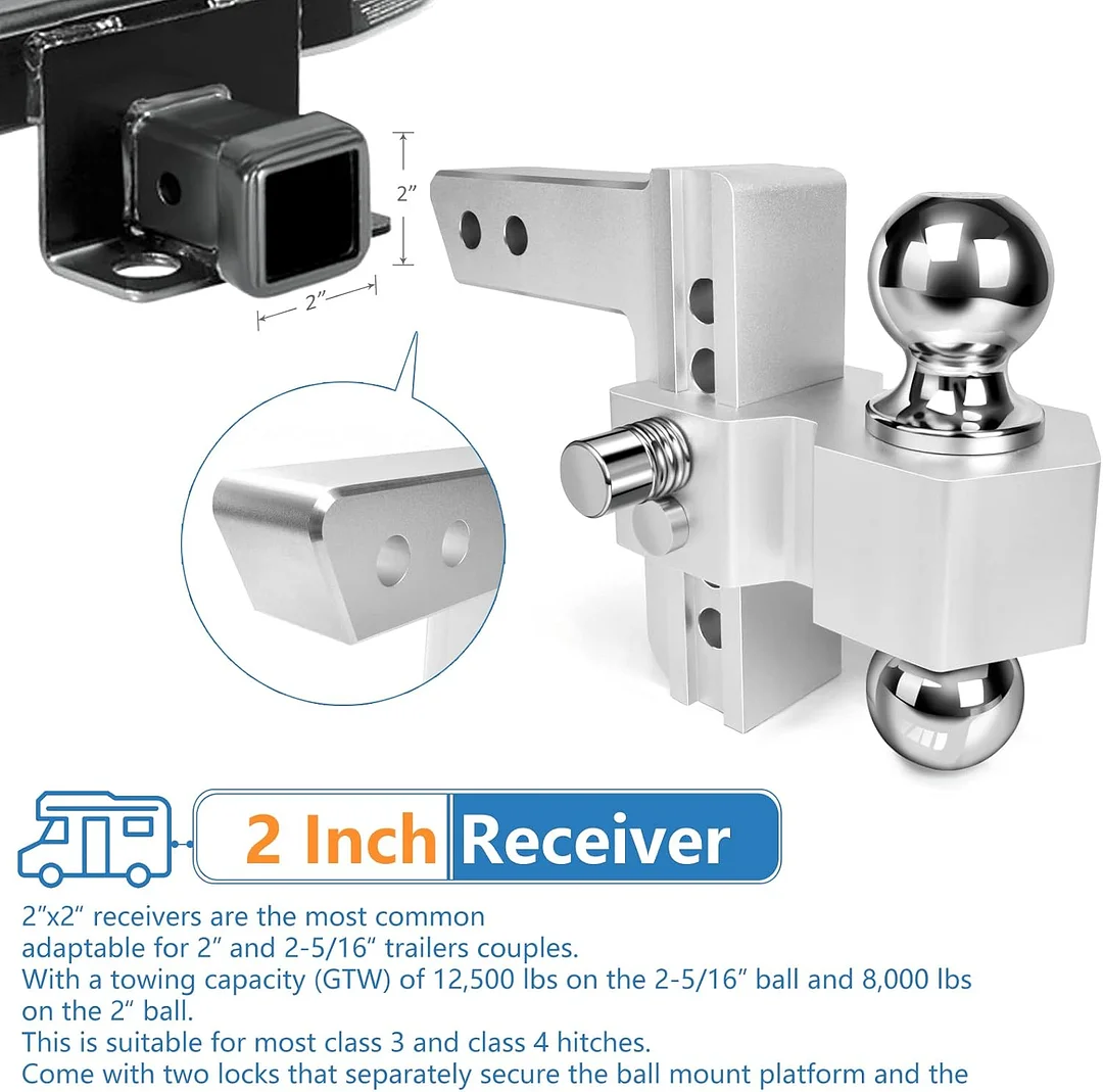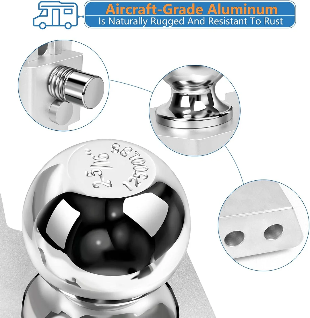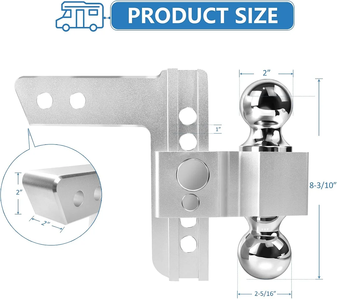 The upgraded version of the Adjustable Trailer Hitch uses special craftsmanship and is hand-sanded polished by artisans with decades of experience and the silver powder coat can protect the hitch very well.