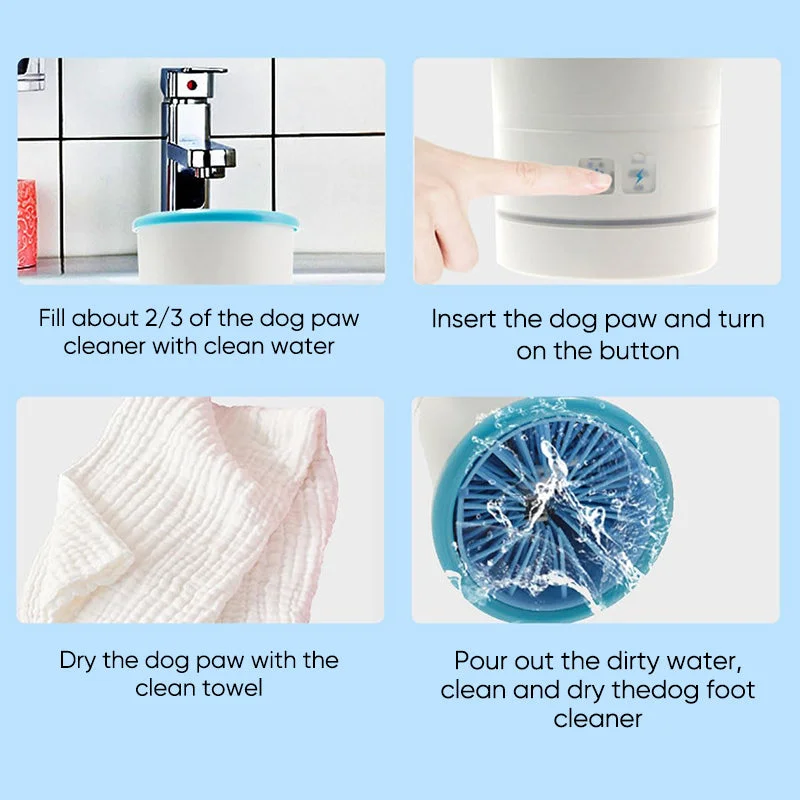 Easy to use and clean: Simply pour two thirds of the total volume of the cleaner with water and cleaning solution into the cleaner and release your pet's paws. Turn on the cleaner and it will automatically clean the clay paws. Giving your puppy's chubby paws a gentle care without injury and helping to relax the paw muscles.