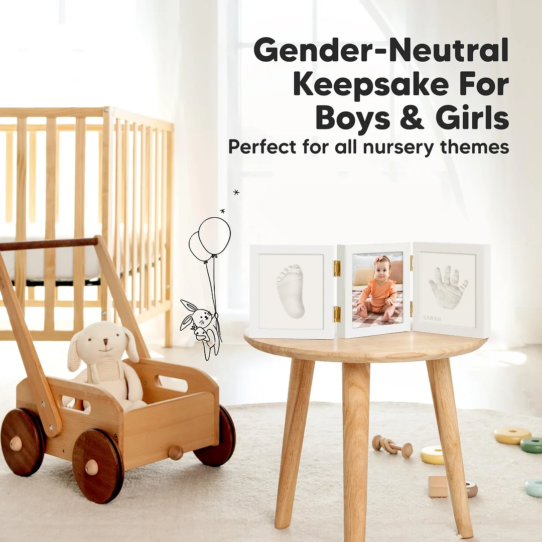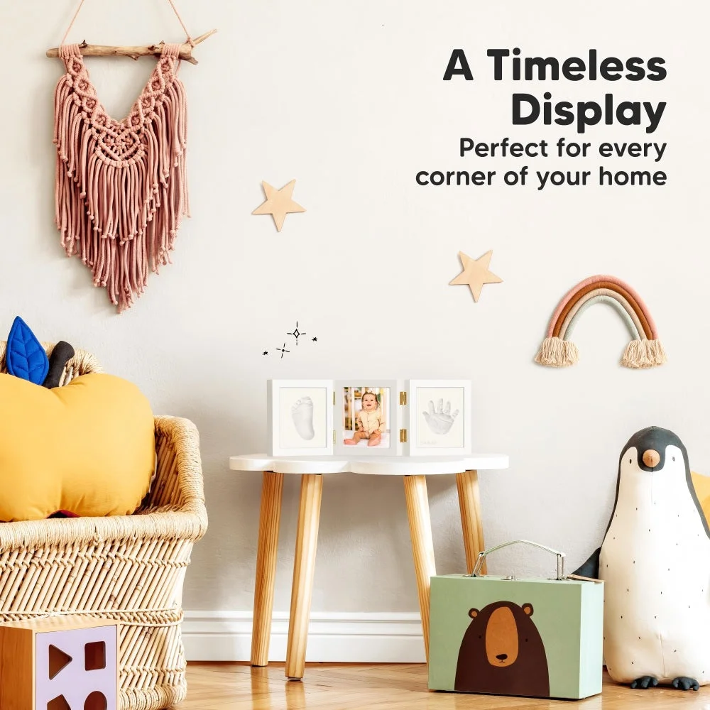 Lasting memories: Designed to preserve your baby’s earliest moments, this handprint and footprint frame kit creates a timeless keepsake that parents can display in nurseries or living spaces to cherish special memories for years to come.