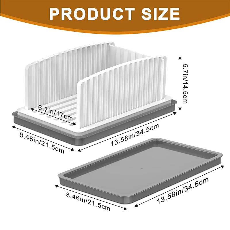 Convenient Crumb Catching Tray: Featuring a multi-functional tray underneath, this bread slicer eliminates the countertop mess by catching crumbs and keeping surfaces clean. The lightweight tray is easy to clean and can also serve as a bread holder or dinner tray for gatherings and parties.