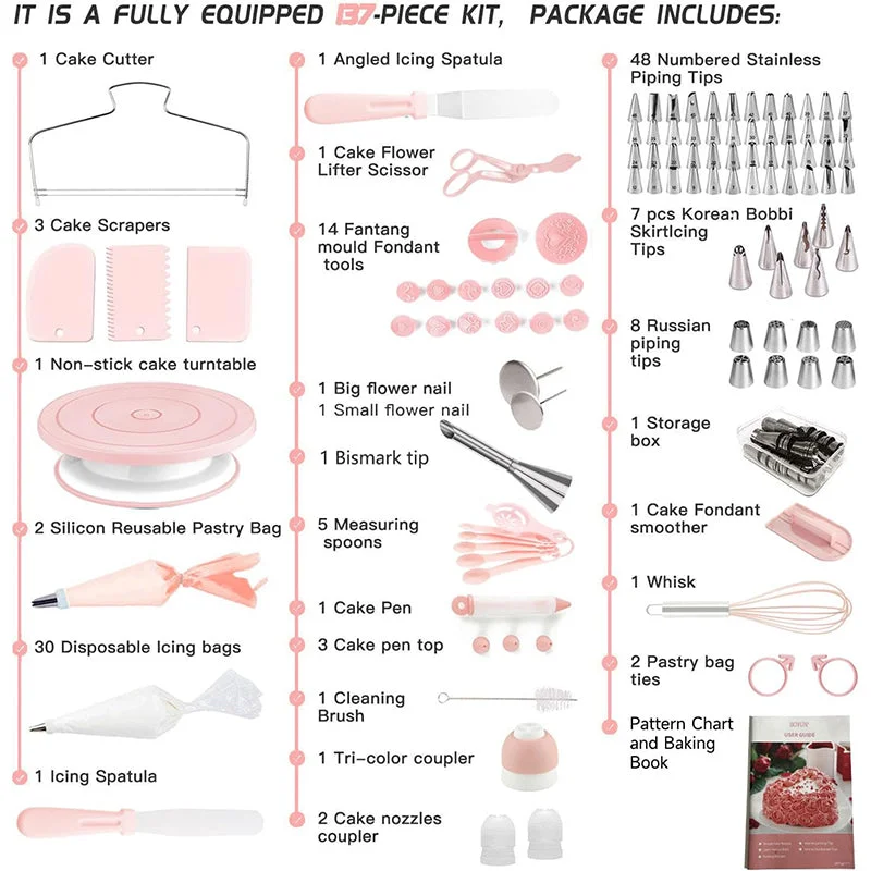 Food grade safety materials: All decorating accessories are crafted from high-quality BPA-free plastic and corrosion-resistant stainless steel, ensuring a non-toxic and reliable experience for all your baking projects.