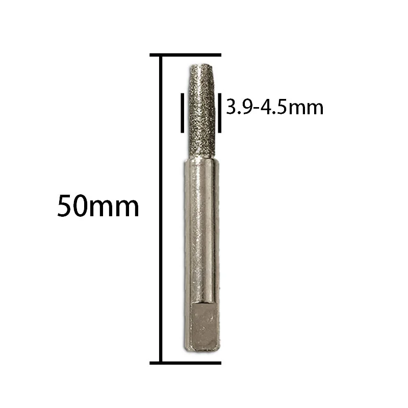 It is as easy to use as a pencil sharpener; just set the clamp to the rod, position the pawl on the tooth, insert the burr into the guide sleeve, and turn the handle.
