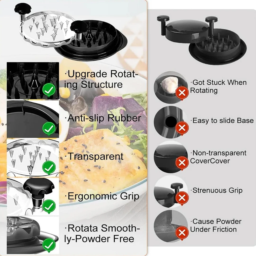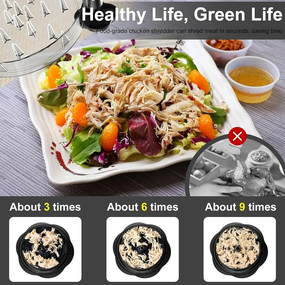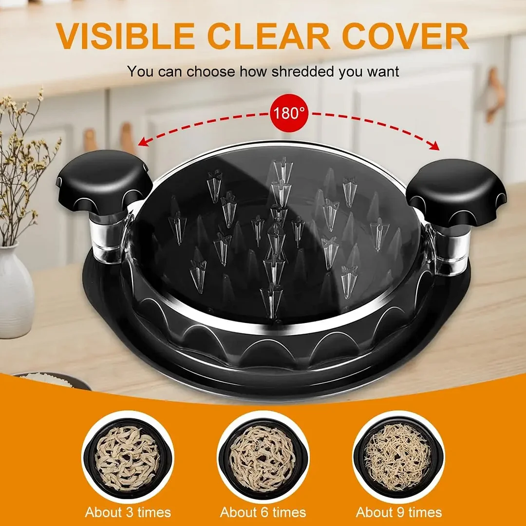 Shreds Meat in Seconds: Equipped with built-in plastic teeth that cover the entire area, this meat machine tightly clamps the food. The lid has extra spikes on the edge to help gather and evenly shred the meat in the center. An ergonomic handle and anti-slip base ensure comfort and ease of use, even during heavy-duty tasks. These updated features make your cooking more efficient.