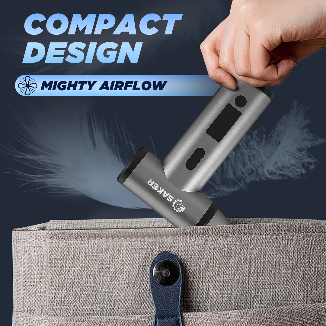 Mini and lightweight blower: Our air blower is small in size, only 270g, and is easy to carry and store. Whether it is used at home, outdoors, traveling, or in the office, the Saker mini blower is your ideal choice.