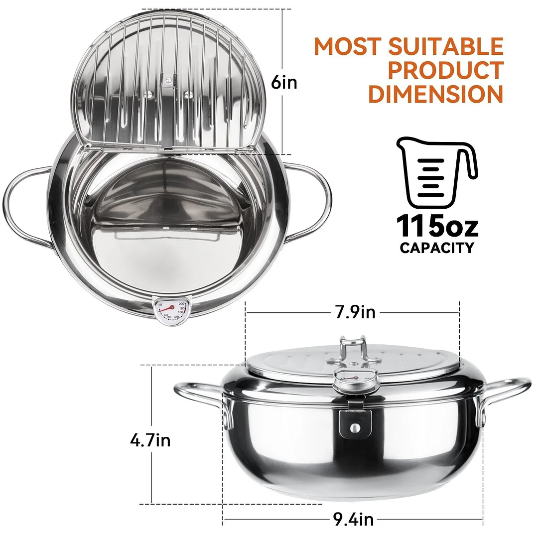 🥰Thoughtful Design: Equipped with a dedicated basket clamp for easy oil drainage. It is also equipped with an excellent ergonomic design handle, which is not only convenient to take, but also ensures stable operation, avoiding burns and slipping, allowing you to use it with peace of mind and comfort.