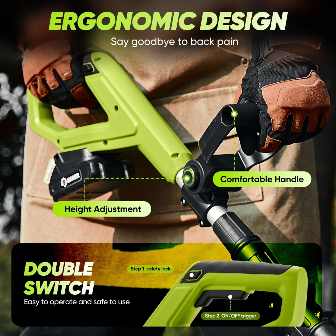 Double-safety for worry-free use: Your safety comes first. Saker tiller features a unique two-step start system - you must press both the safety lock and trigger together to operate. This smart design prevents accidental starts, giving you complete peace of mind while gardening around family and pets.