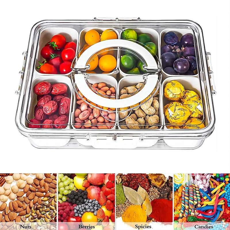 Multifunctional Organization: With 8 compartments, this snack box keeps foods separate and your kitchen tidy. Perfect for snacks, condiments, dried fruits, nuts, and more.