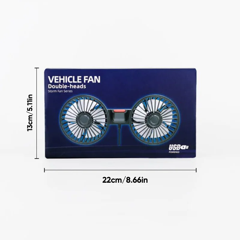 Dual-Head Design Car Fan: This USB-powered car fan features two rotatable heads that can swivel 360 degrees, effectively expelling hot air from parked cars. It delivers strong airflow to quickly cool down rear seat passengers and pets, perfect for when the car's air conditioner is weak or absent. Three stepless speed controllers allow easy and effortless wind speed adjustment to suit your needs.