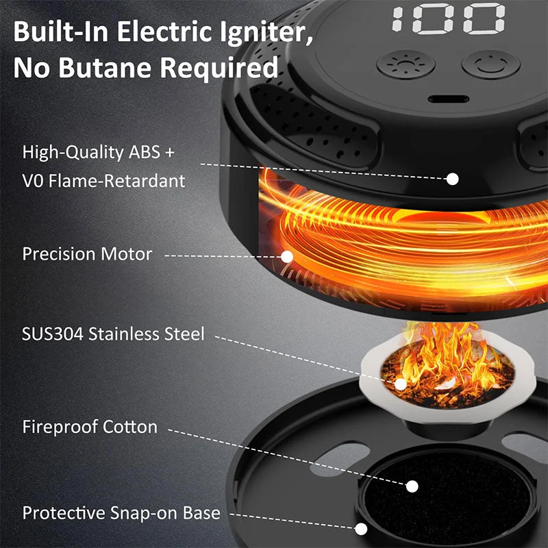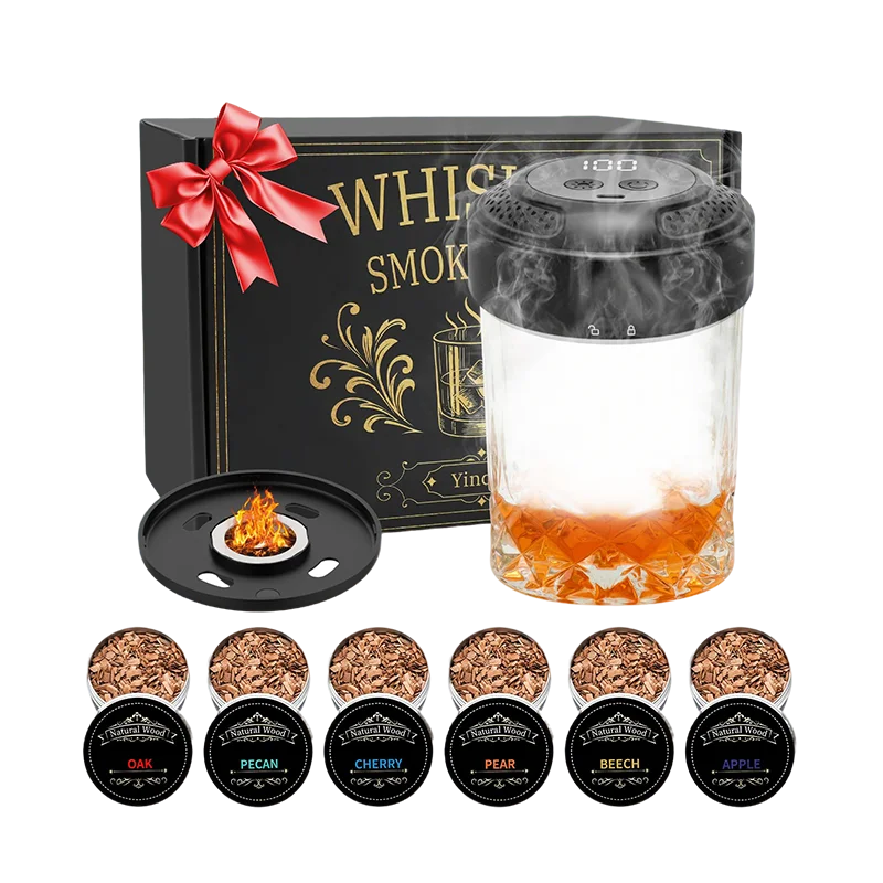 Flame-free electric whiskey smoker kit: Say goodbye to butane and complicated setups—this all-in-one electric cocktail smoker offers a safer, cleaner USB-charged alternative with a flame-free design, auto shut-off protection, and up to 130 uses per full charge.