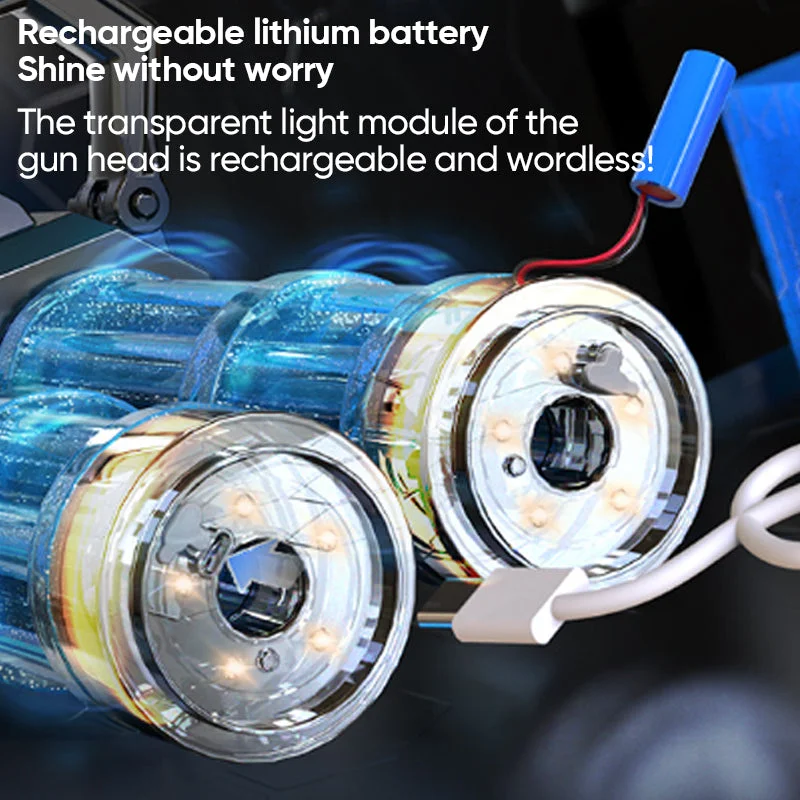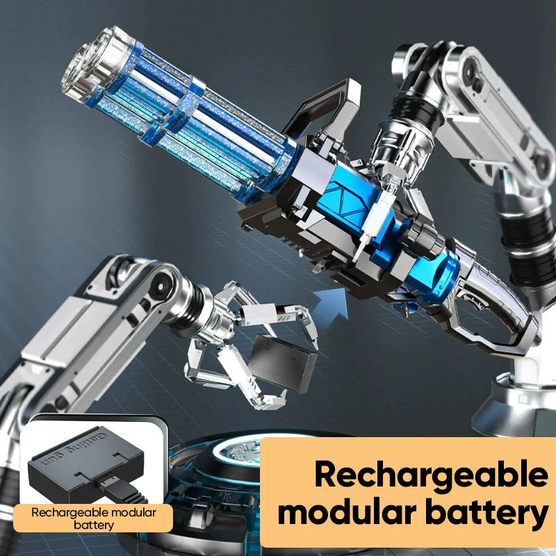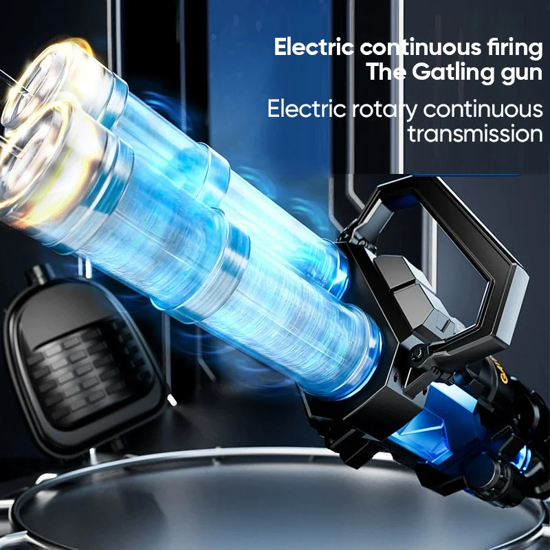 Continuous electric firing feature: Equipped with a high-speed electric motor, enabling single-shot/continuous firing mode switching to simulate the rapid-fire experience of a real Gatling gun. Optimized water pump and intelligent chip control ensure consistent water stream propulsion and high-impact spraying.
