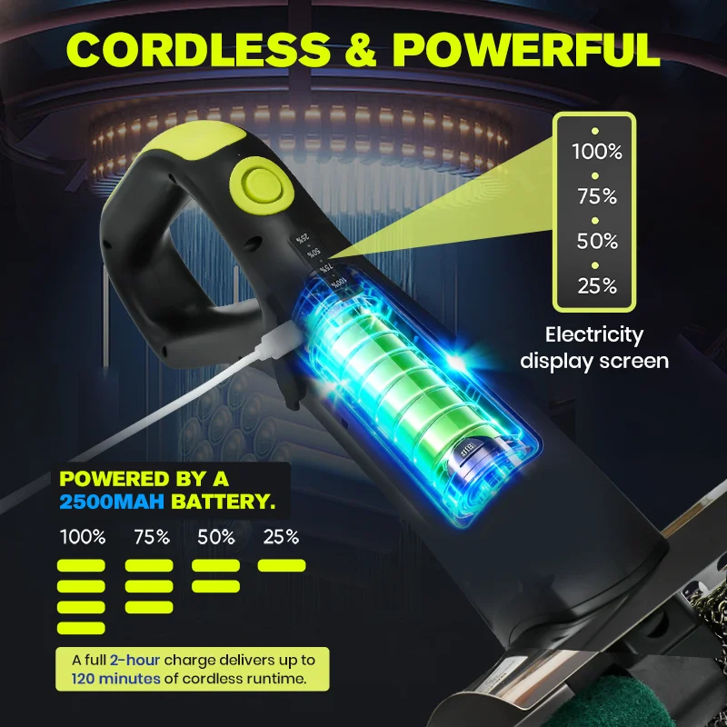 Cordless & rechargeable for ultimate convenience: Enjoy complete freedom of movement without being tethered by a cord. This rechargeable electric spin scrubber have 2500mah and 2 hours lifetime is perfect for cleaning your outdoor grill anywhere, from the backyard patio to the campsite. A must-have for modern grilling tools.