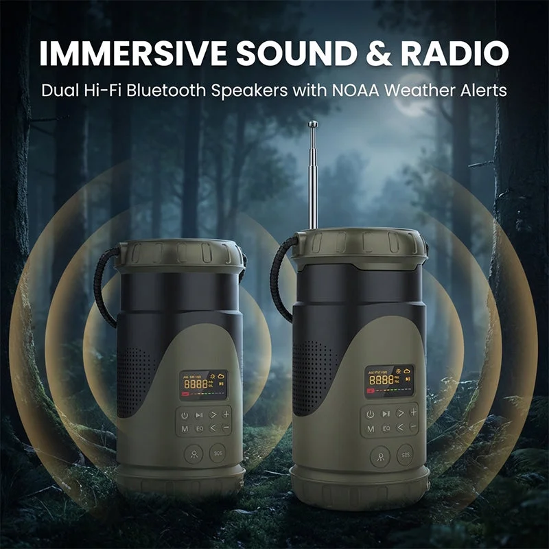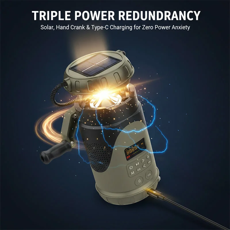 Multiple: Stay powered anytime with the built-in 5000mAh rechargeable battery, hand-crank generator, and solar charging panel — no need to worry about running out of power.
