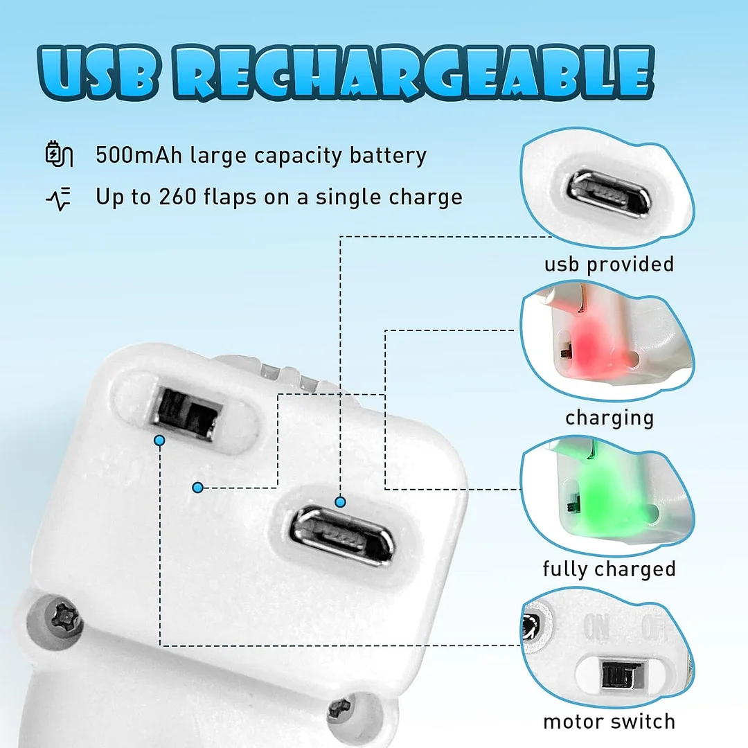 Usb rechargeable: This toy can be charged via USB, saving the trouble and cost of replacing the battery. A USB charging cable is included in the package. When charging, the red light is on. When fully charged, the green light is on. A full charge can support up to 260 vibrations and chirps.
