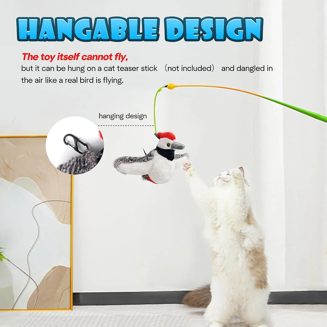 Interactive cat toy: Whenever your fur baby touches the toy, the built-in automatic motion sensor will be activated, and the woodpecker toy will flap its wings and chirp, continuously bringing freshness to your kitten.