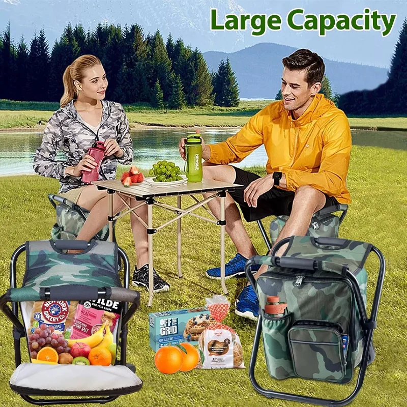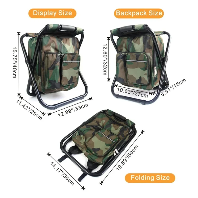 Multi-purpose 3 in 1: Functions as a backpack, insulated cooler bag, and chair. The backpack features a lightweight seat and breathable, wide shoulder straps for greater comfort. Its ergonomic design ensures extra stability and comfort. Once folded, the backpack cooler stool is compact, easy to carry, and store.