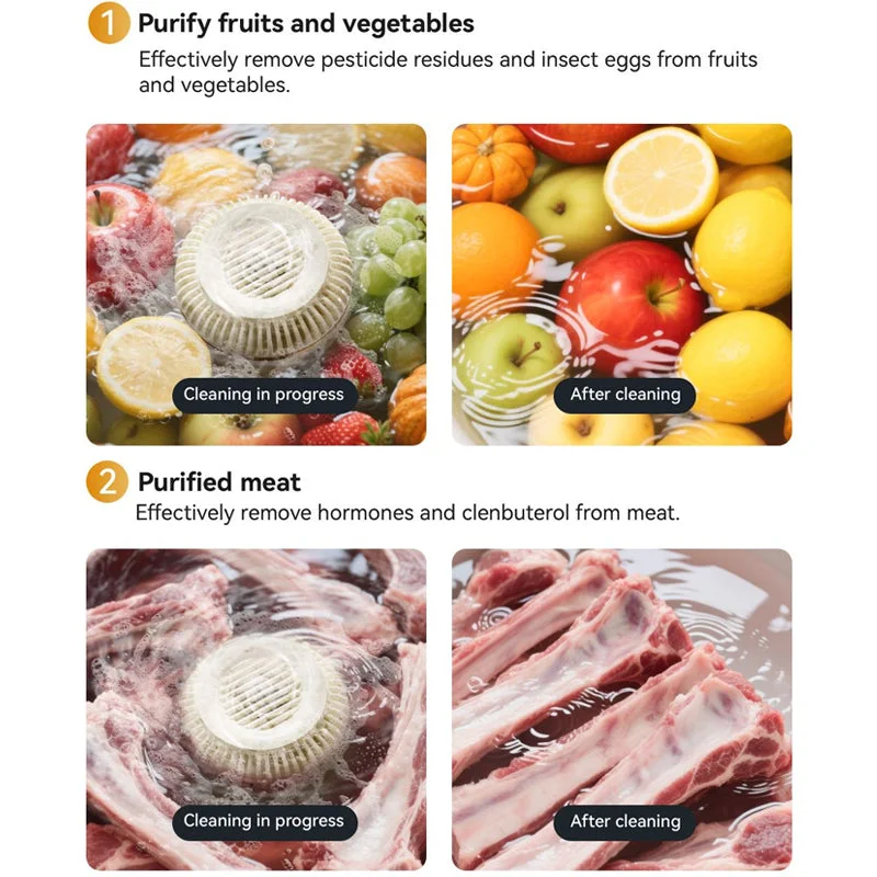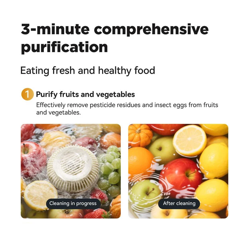 Rapid purification: This device uses hydroxide water ion technology to quickly and efficiently clean produce, saving both time and labor during meal preparation.