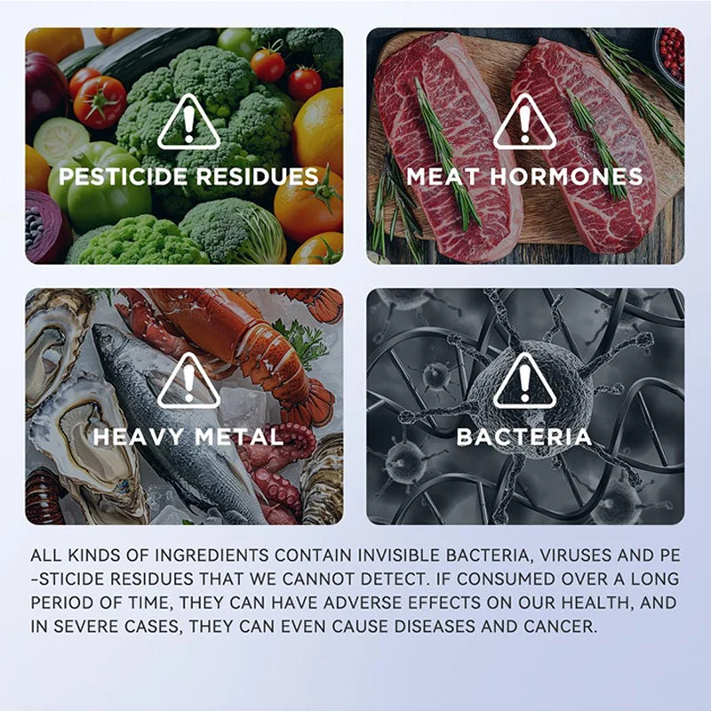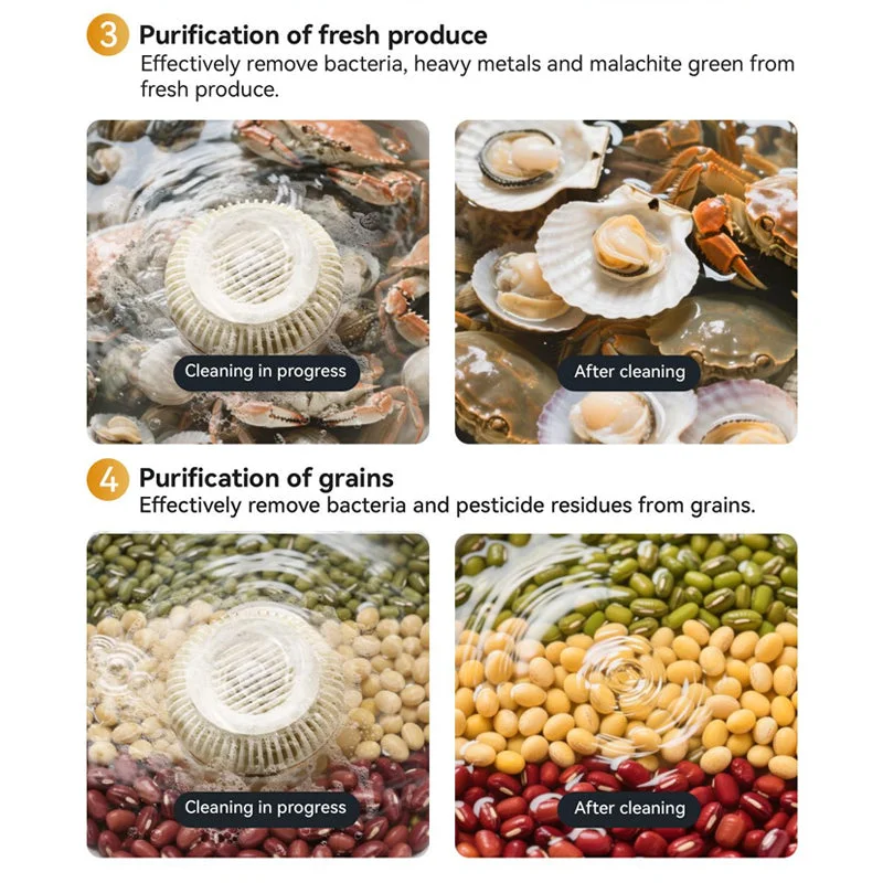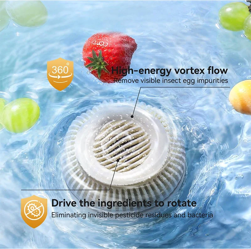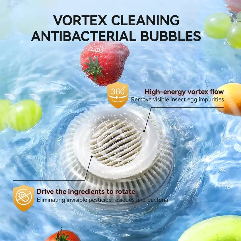 Sterilization bubbles: It releases specialized sterilization bubbles designed to penetrate deep into the crevices of produce to remove contaminants and harmful residues.