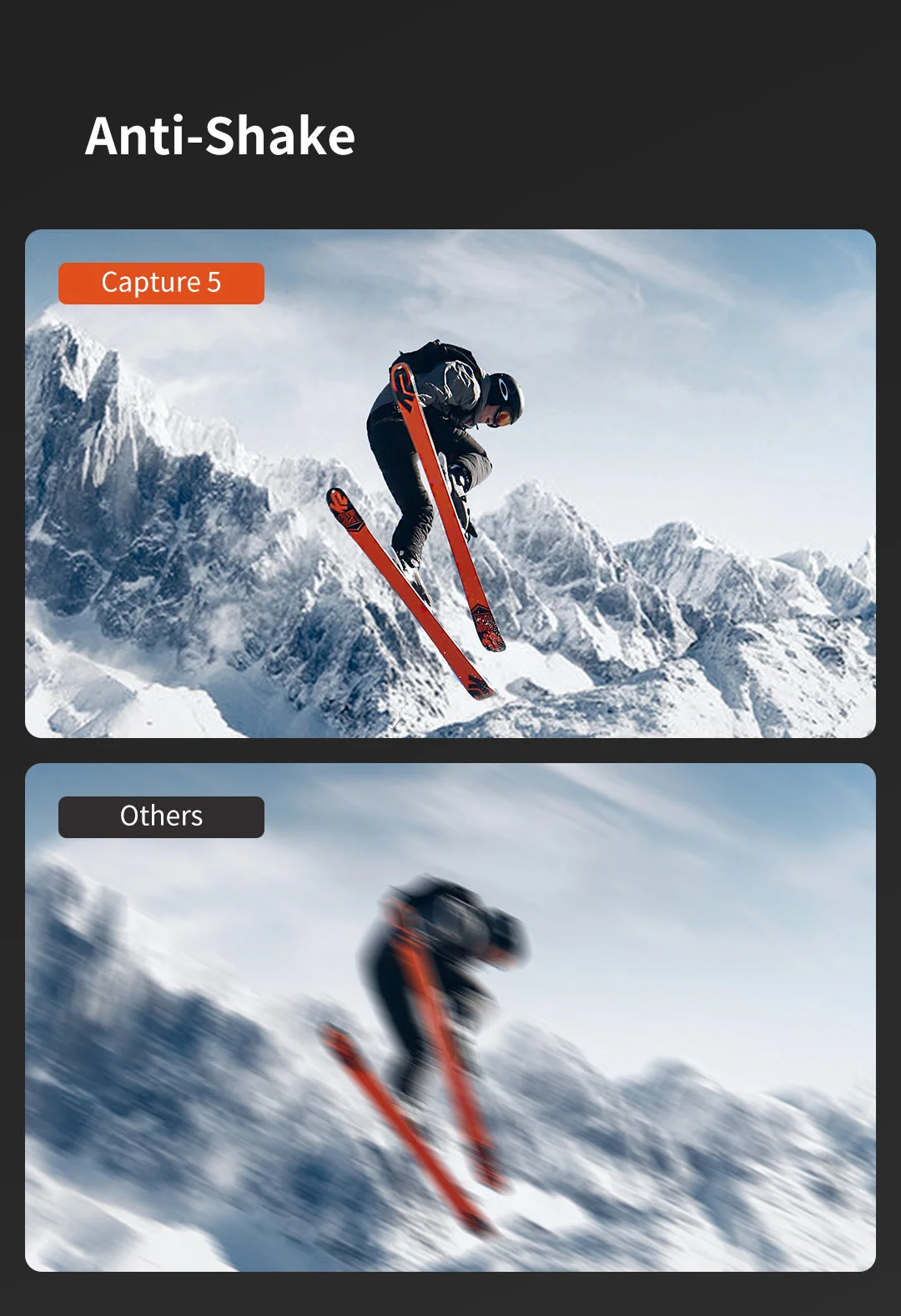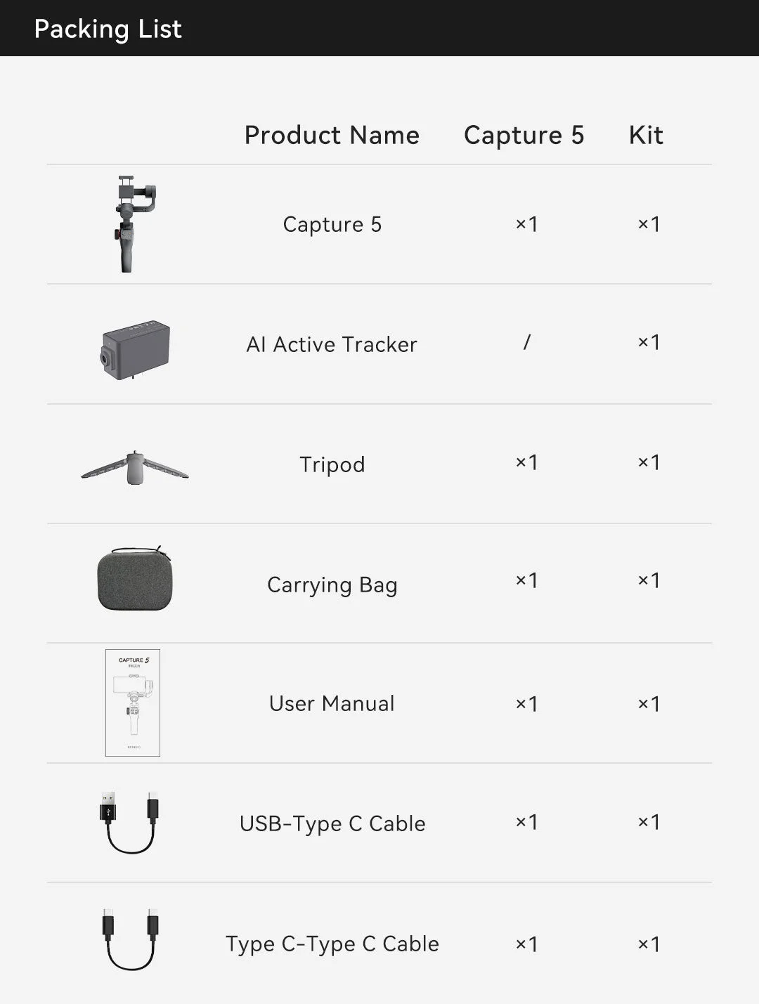 AI vision sensor with magnetic fill light: Capture 5 Kit phone gimbal stands out with its brilliant AI tracking capabilities, robust software and exceptional design. With the AI tracker, the gimbal performs face/body tracking smoothly without Bluetooth connection and App limitations