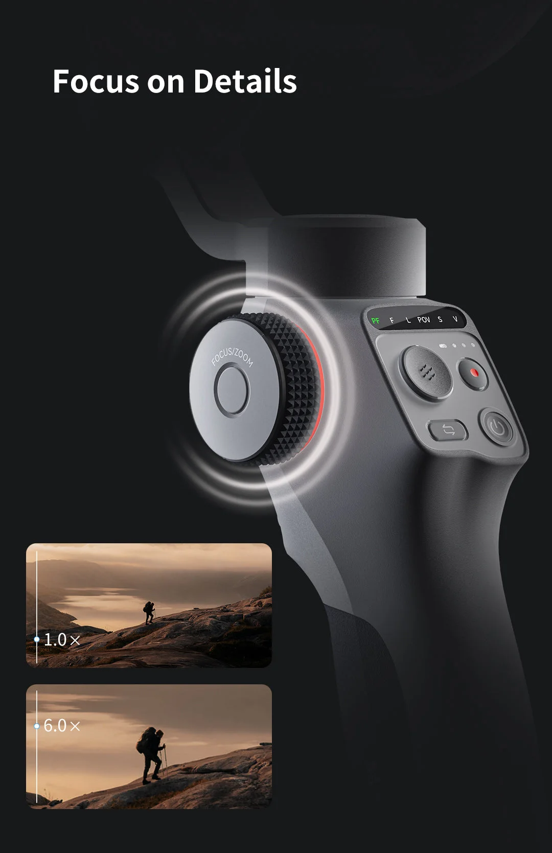 All with control wheel: Supports roll axis rotation, focus control, and an adjustment of cold/warm light&RGB light with the versatile control wheel