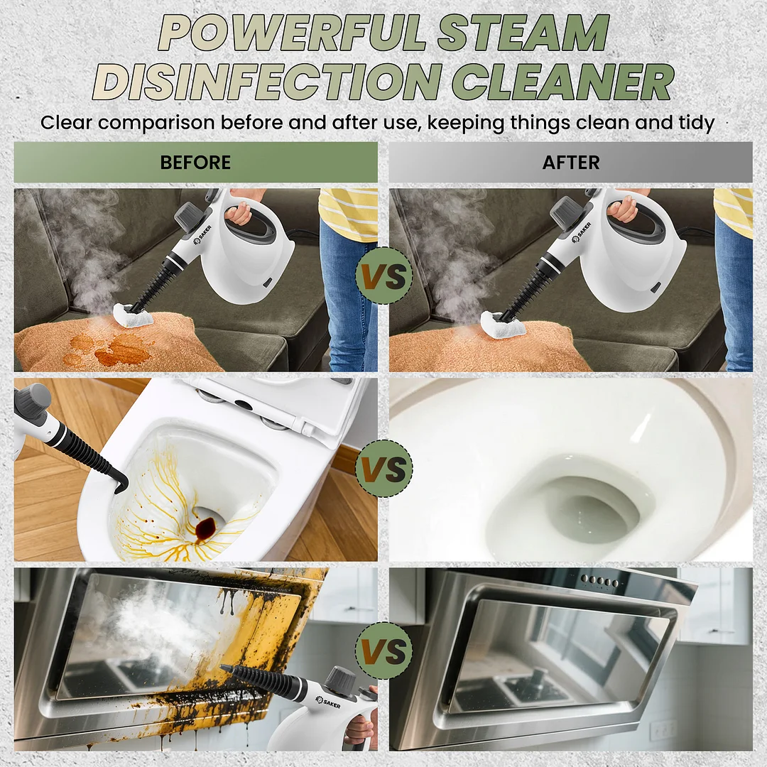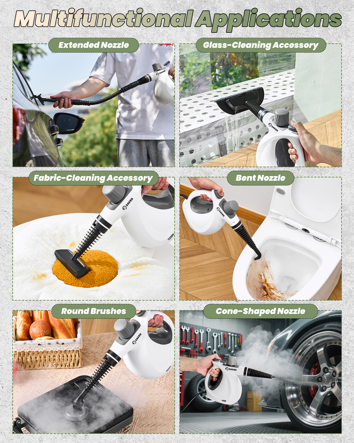 Versatile cleaning applications: This handheld steam cleaner is suitable for almost all hard surfaces. Perfect for cleaning tiles, sinks, stovetops, windows, sofas, and cars. It’s ideal for deep cleaning kitchens, bathrooms, and more—without the need for harsh chemicals.
