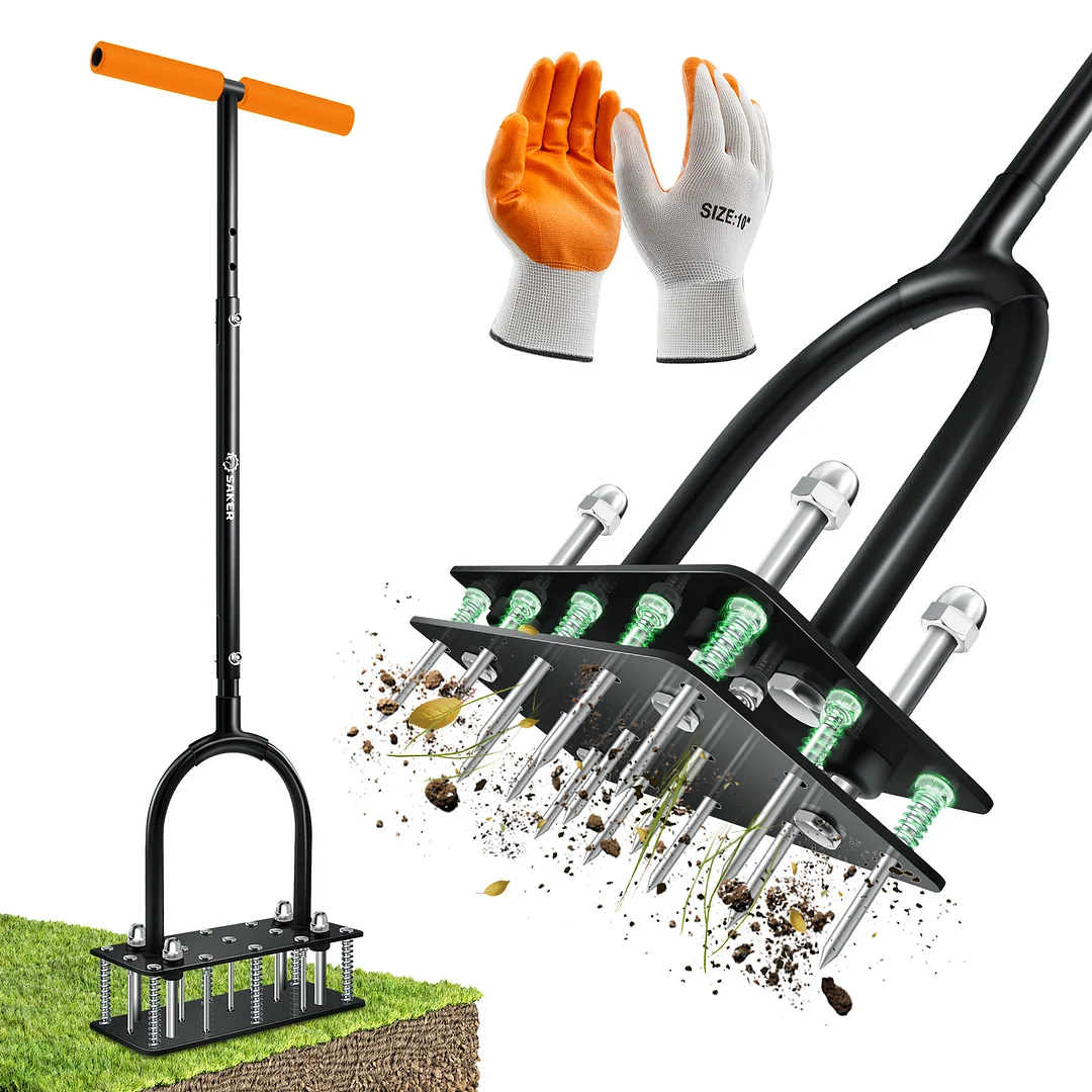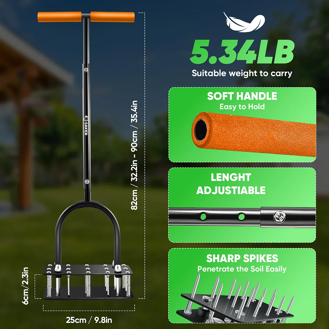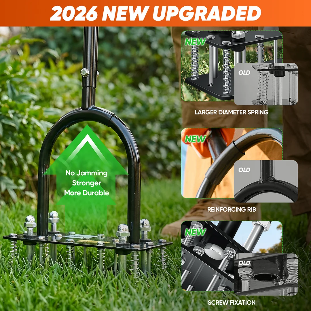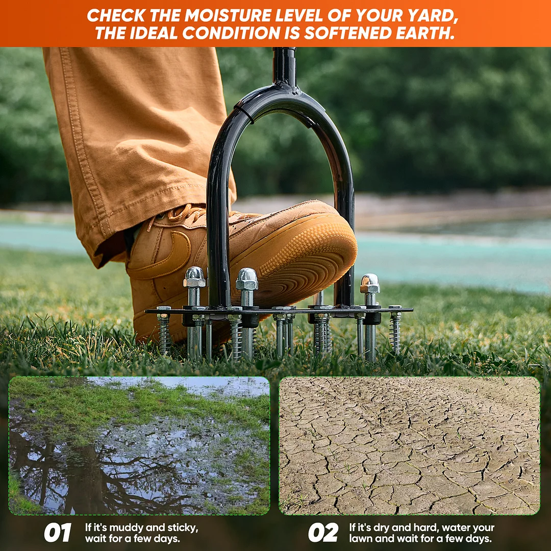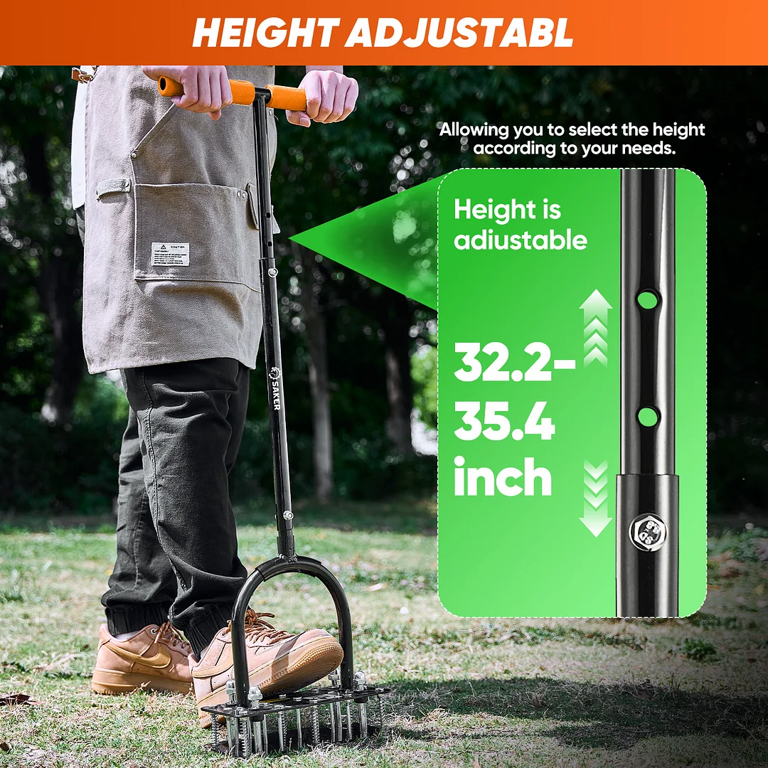 Reinforced heavy-duty construction: Made of thickened iron with a rust-resistant coating, the aerator features a foot pedal secured with high-strength screw connections for greater load capacity, improved stability, and reduced risk of breakage.