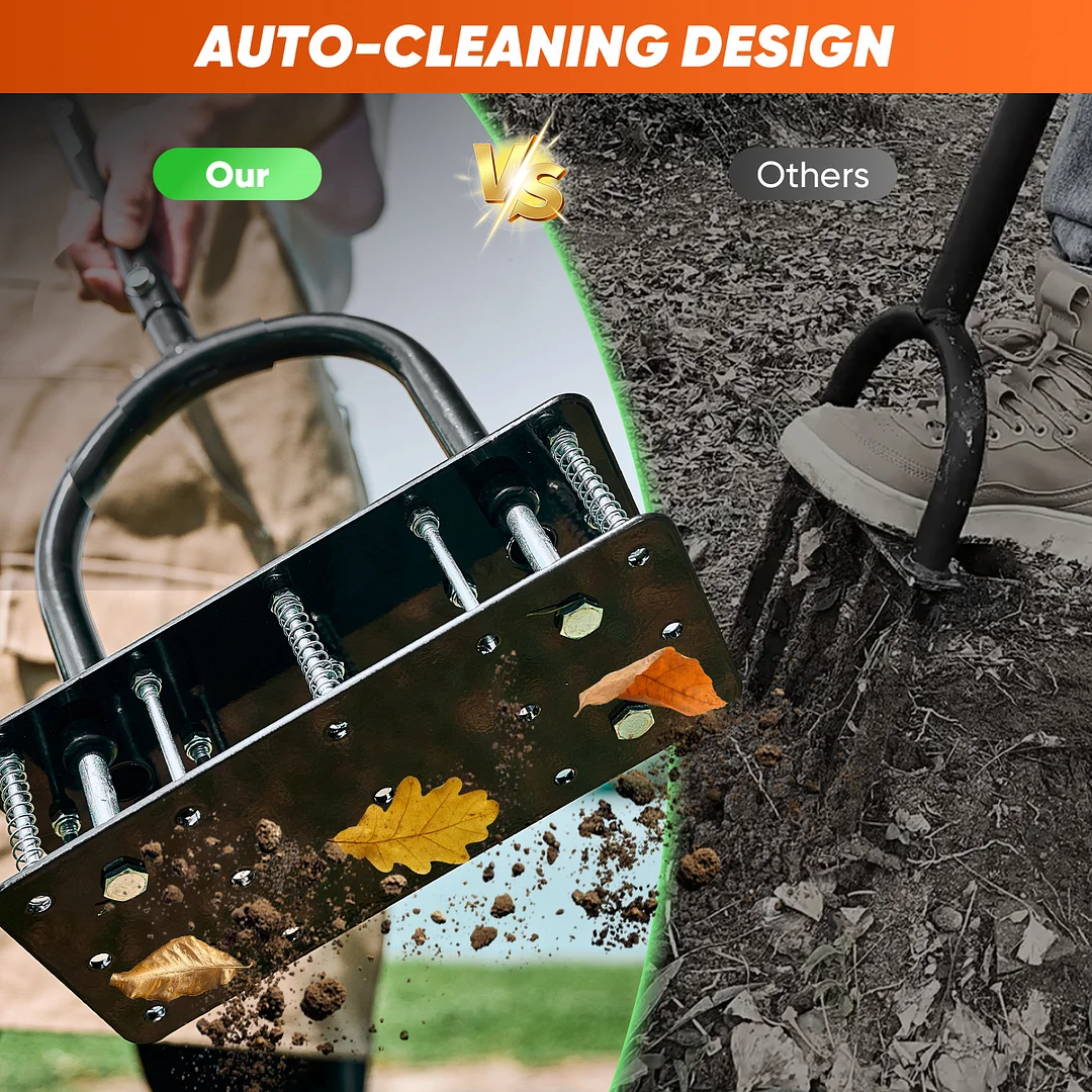 Upgraded double-layer spring system: The built-in double-layer spring automatically ejects soil and debris during operation, preventing clogging and eliminating the need for manual cleaning.