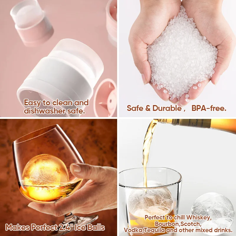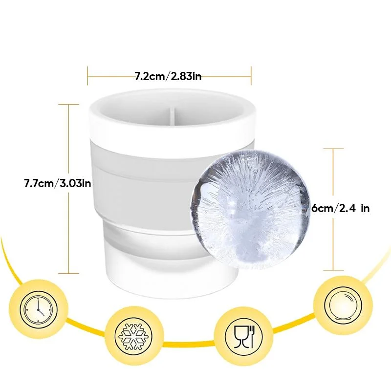 Transparent Ice Spheres for Aesthetics: Create beautifully transparent spherical ice cubes that enhance the appearance and taste of your favorite cocktails. Perfect for summer treats, home gatherings, bar setups, restaurants, beach outings, and festive occasions, these round ice cube molds add a touch of elegance to any drink.
