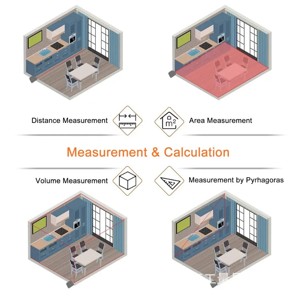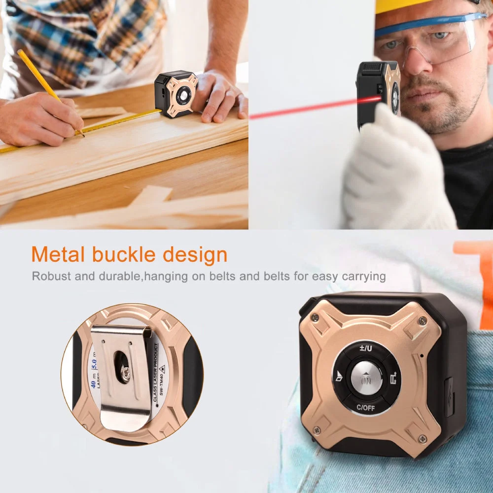 Tape Measure+ Laser Distance Meters🥇 : 5m tape measure+40m laser measurement, with a measurement accuracy of ± 2mm; Continuous measurement requires only moving the device within an effective range to obtain accurate results. The dual photosensitive aperture significantly improves the stability of measurement.
