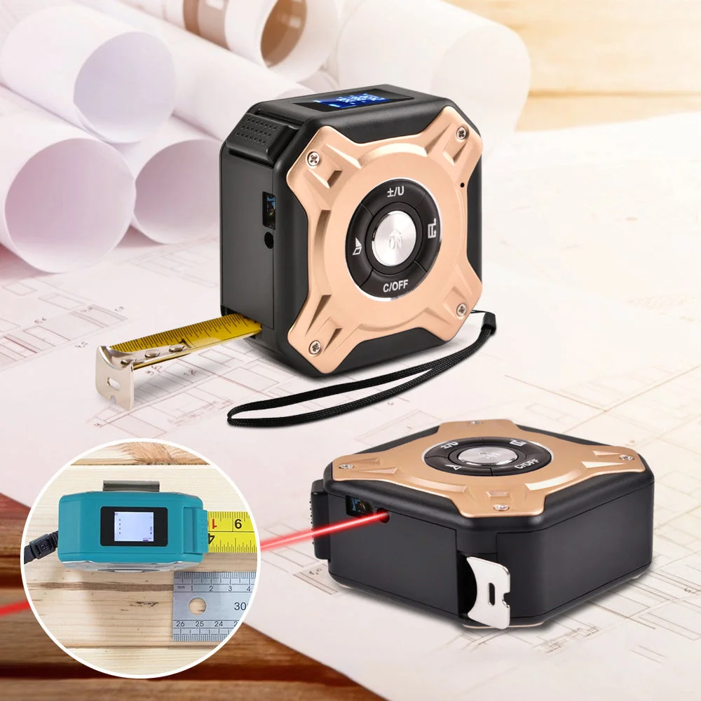 Do you always measure with a traditional tape measure?🥇 : Are you annoyed by the lack of length and limited measurement distance for regular tape measures? A regular tape measure cannot lock a certain position. Are you worried about being cut by the tape measure? This 2-in-1 laser tape measure has changed everything