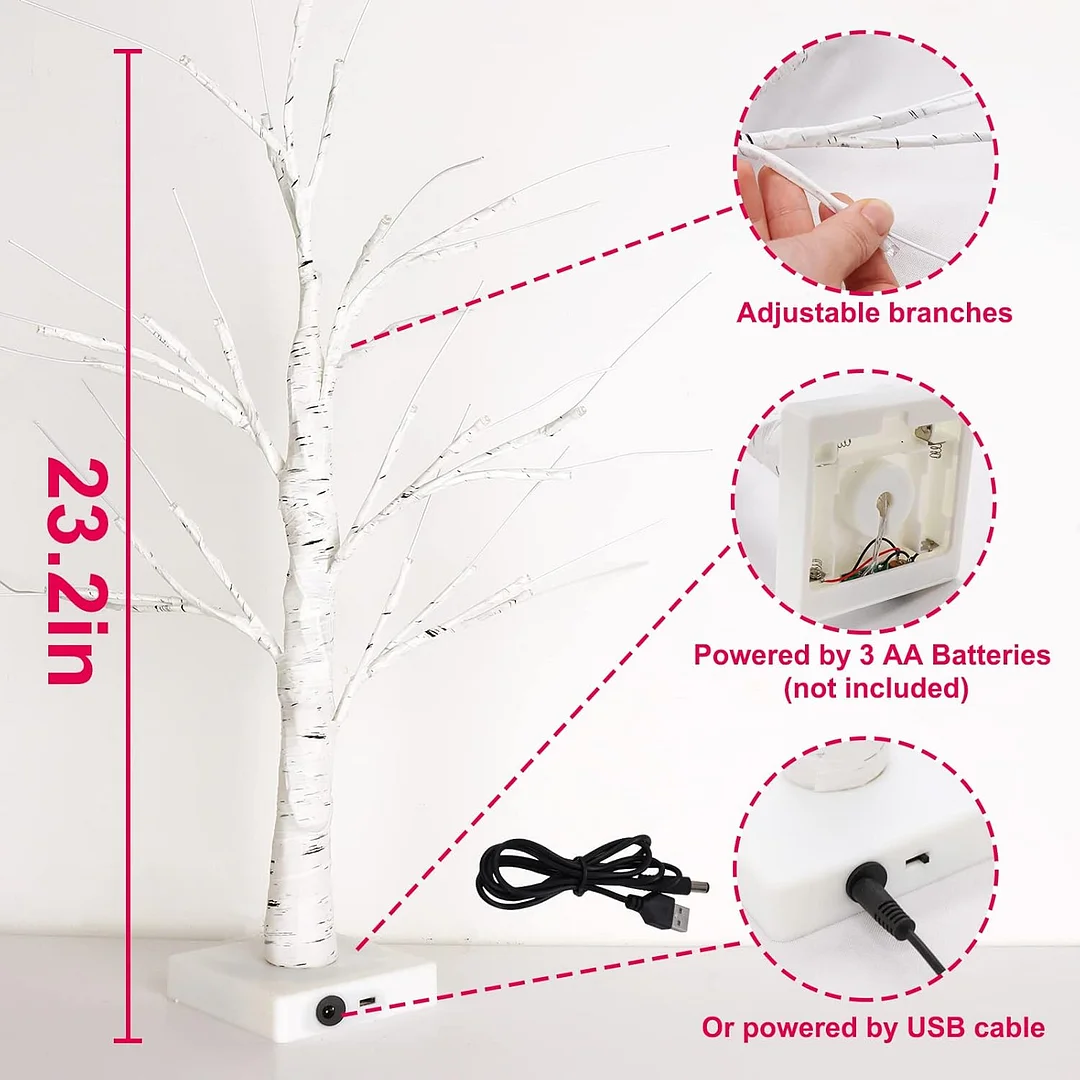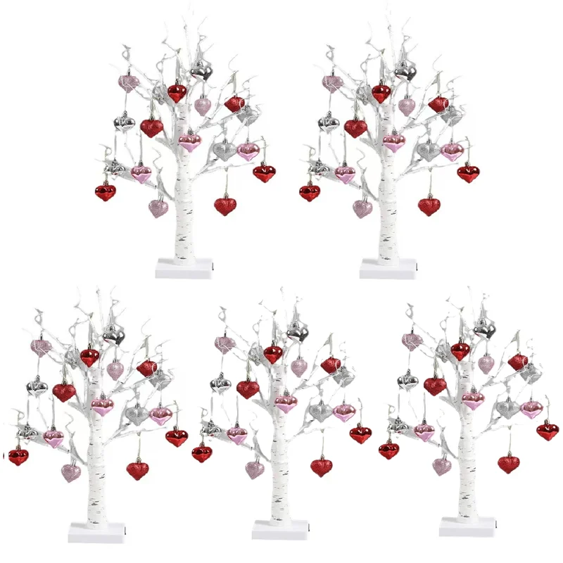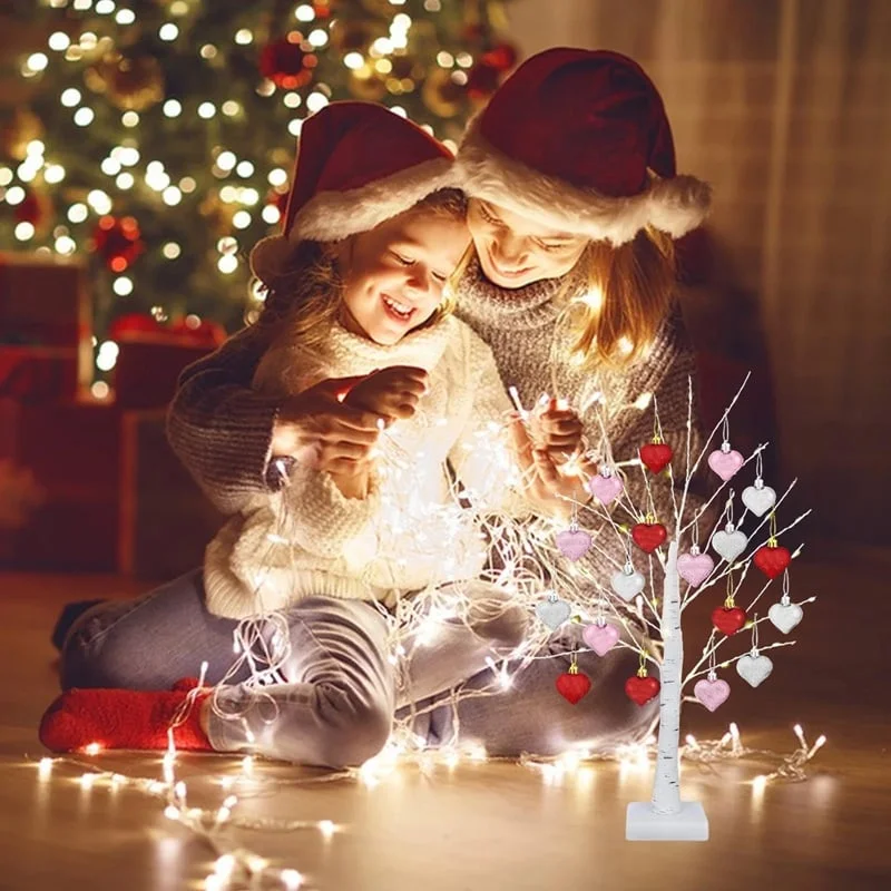 Aesthetic Lighted Birch Tree with 18 Heart Ornaments – 2ft Warm White LED Table Lamp for Hygge Home Decor (USB/Battery)