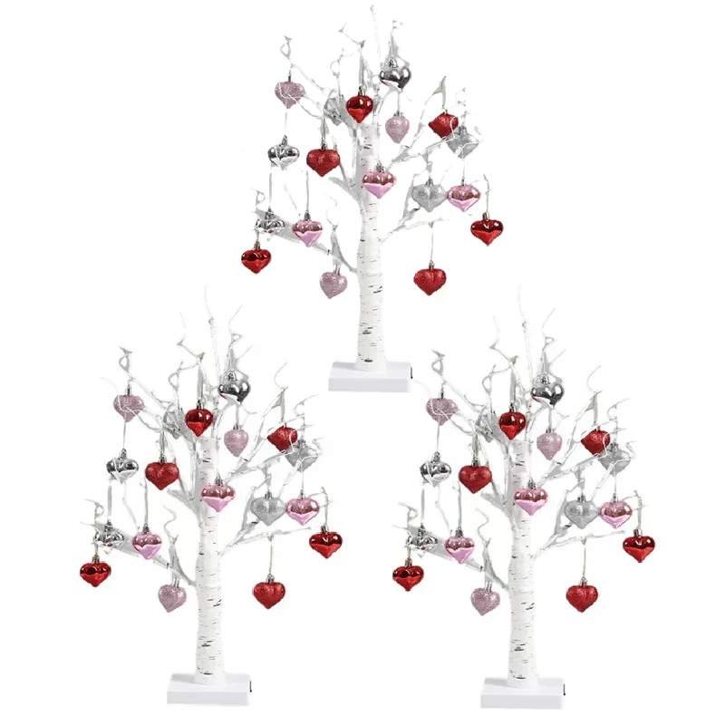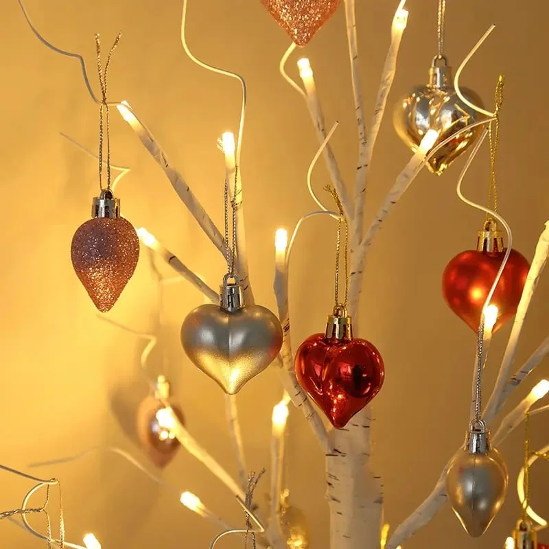 💖 TEXTURED DECORATIVE ORNAMENTS – Comes with 18 removeable heart-shaped baubles in a curated mix of finishes (glitter, matte, and glossy) and colors (Pink, Red, Silver/White). They add depth and a playful touch to the tree, or you can remove them for a purely minimalist look.
