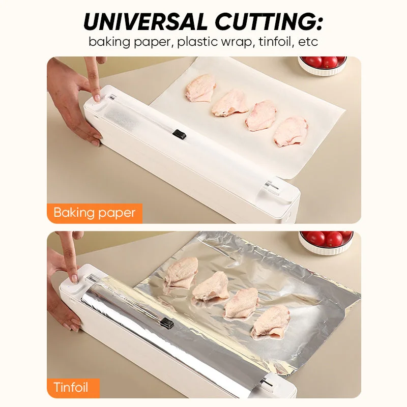 Safety cut: This item features one-button automatic cutting, so you don’t have to worry about cutting your fingers, and the cutting surface remains neat. The cling film cutter with a two-way sliding blade allows for clean cuts, helping you easily and quickly cut the plastic wrap.