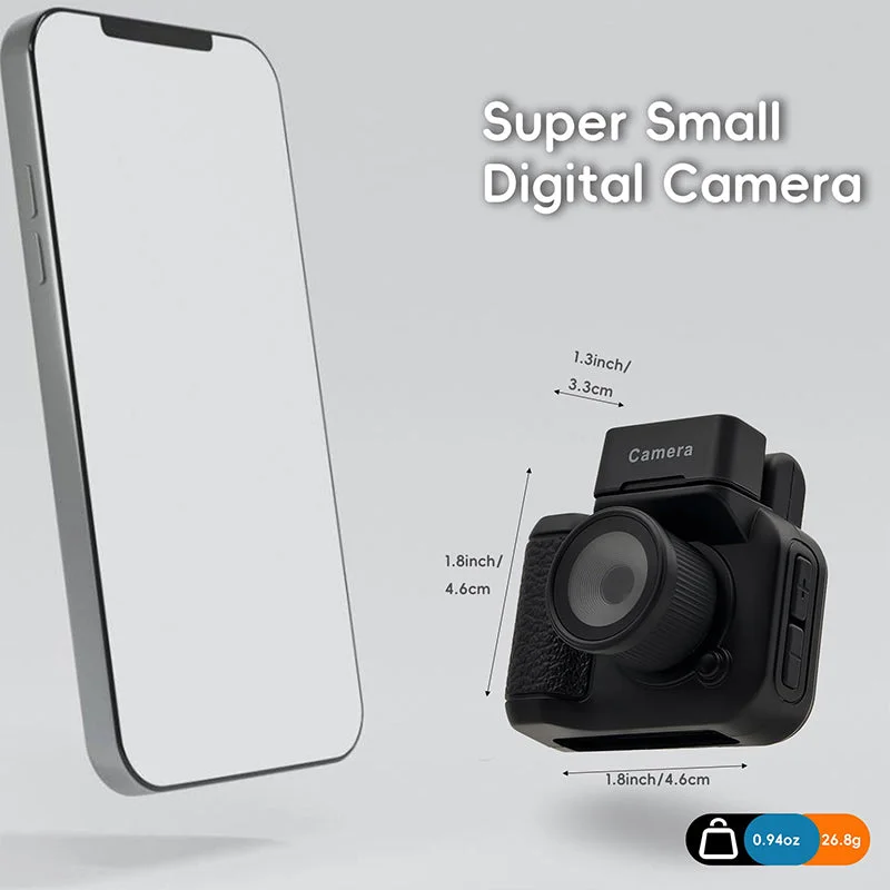 Miniature camera design: This miniature camera features a classic camera design packed with functionality, allowing you to capture photos, videos, and audio.