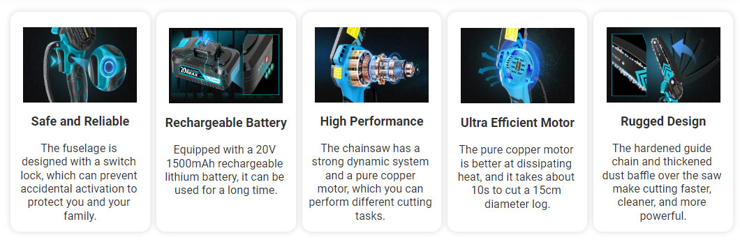 Mini Chainsaw 4" + 2 Batts + Toolbox + 2 Chains