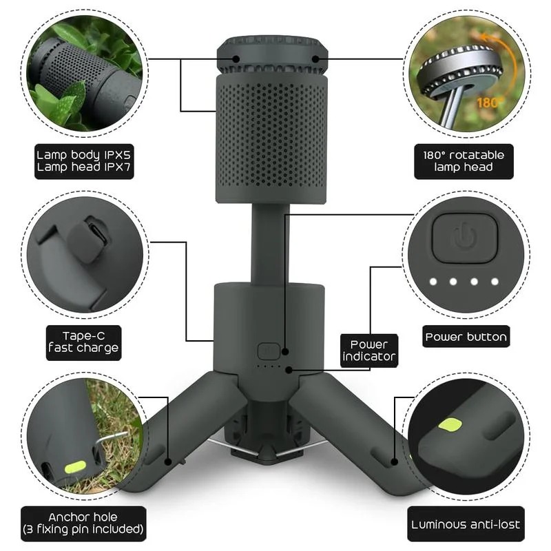 Magnetic tripod: Equipped with 6 built-in neodymium magnetic points, this camping light securely attaches to metal surfaces, ensuring a stable connection. Users can work hands-free in dim environments, making it perfect for various situations such as car repairs, home renovations, and outdoor adventures.