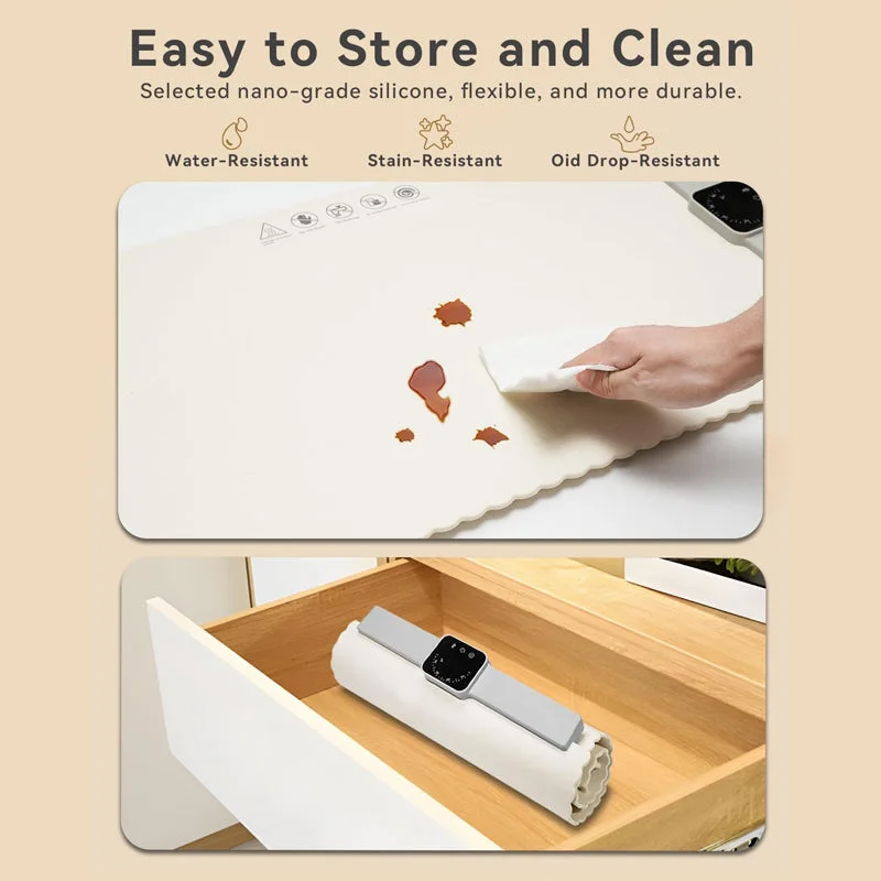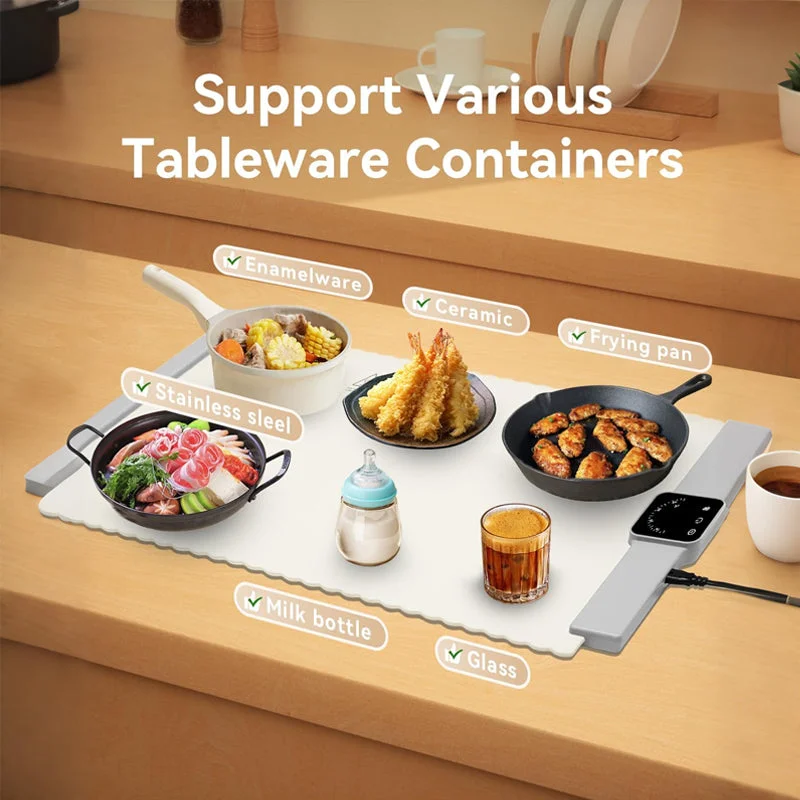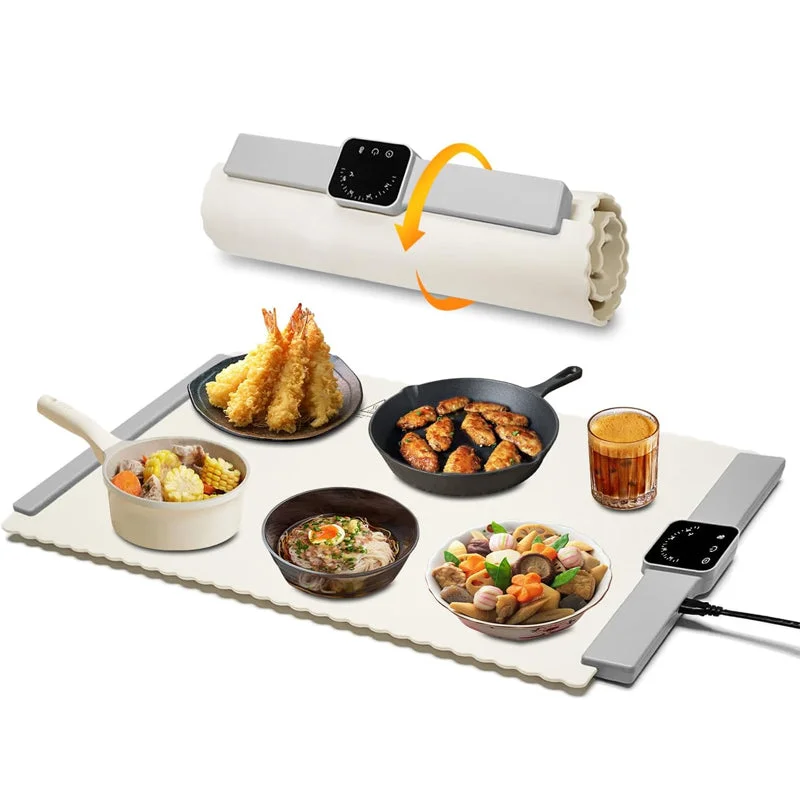 Easy to clean and store: A gentle wipe of the food warming tray removes surface stains with ease. Roll up your food warming plate and place it in your drawer. Take the warming pad with you when you're out on the patio or traveling and enjoy warm food whenever you want.