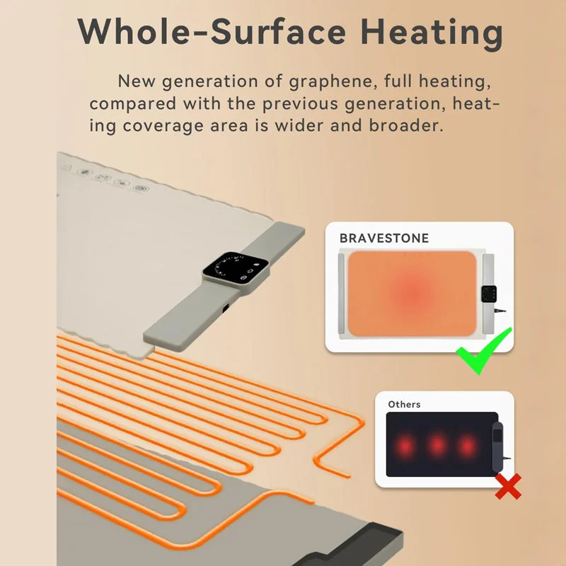 Premium nano silicone material: The silicone electric heating tray is made of top quality flexible nano silicone material, durable, stain-resistant and non-slip. There are silicone "feet" on the bottom so that no heated parts will touch the countertop surface and damage the counter.