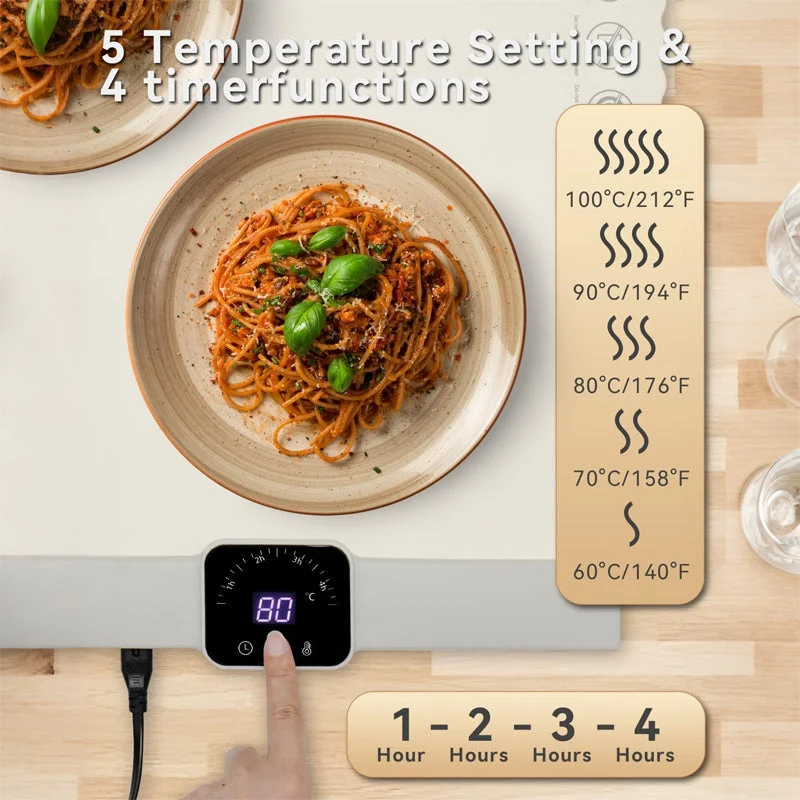 5-levels temperature control: 60°C 140°F, 70°C 158°F, 80°C 176°F, 90°C 194°F and 100°C 212°F. Enjoy the convenience of precise temperature regulation for both warming and heating. Our 5-level temperature control feature ensures food is kept at the optimal temperature to enhance your dining experience.