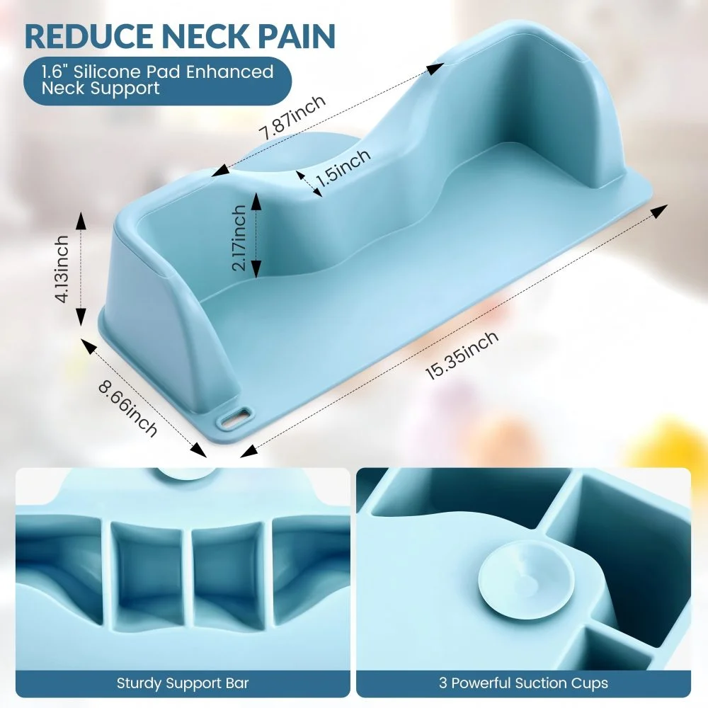 Reduce neck pain: This portable hair washing station for sink features reinforced neck support bars for enhanced stability and comfort. The widened 1.6 inch silicone cushion significantly reduces neck pressure and provides better support.