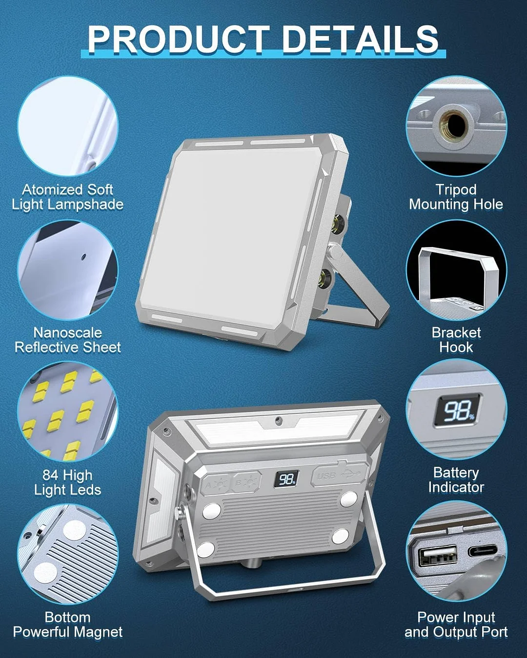 SAKER® Portable Work Light 4000 mAh with 7 Lighting Modes & IP44 Waterproof