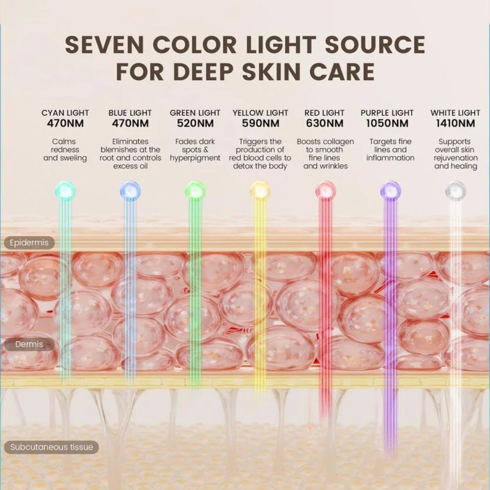 Modes: Offers seven customizable light modes to match different skincare needs, with automatic color cycling after the eighth click.